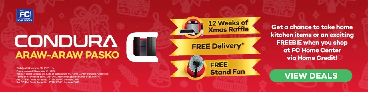 - The promo is open to all customers of FC Home Center branches who purchase the following Condura SKUs: CTF650i, CTF77i, CTF88i, CTF83iCG, CTF98i, CTF107i